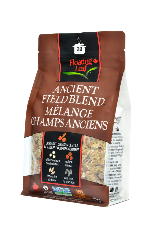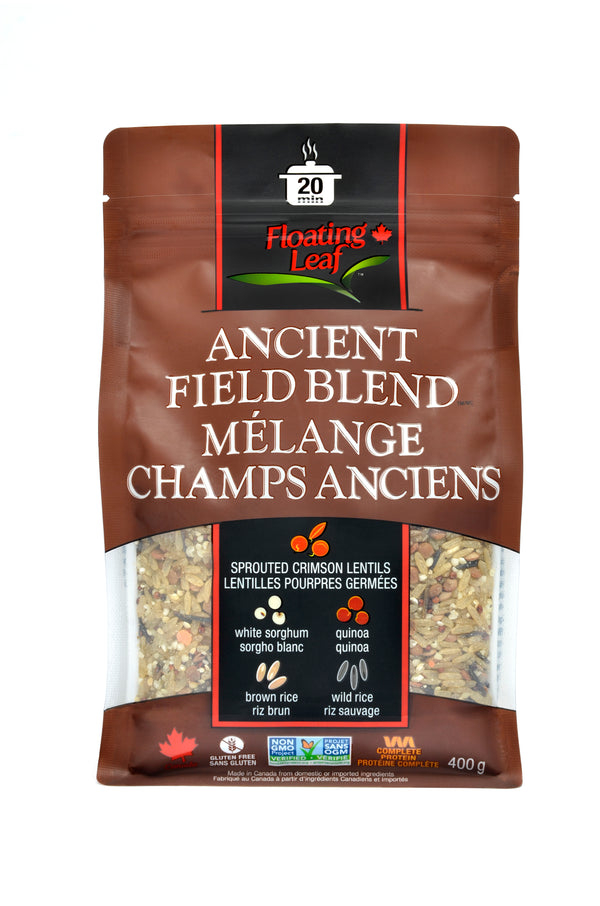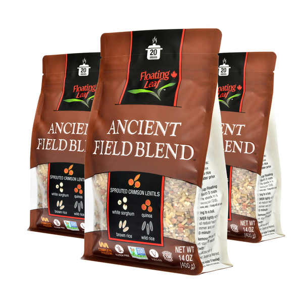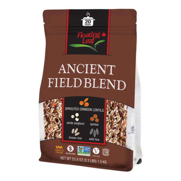 Our Ancient Field Grains are a blend of Sprouted Crimson Lentils, White Sorghum, Quinoa, Brown Rice, and Wild Rice, which offer a complete plant-based protein.